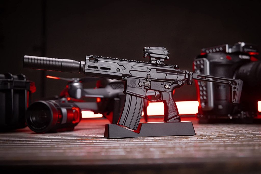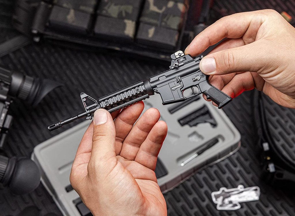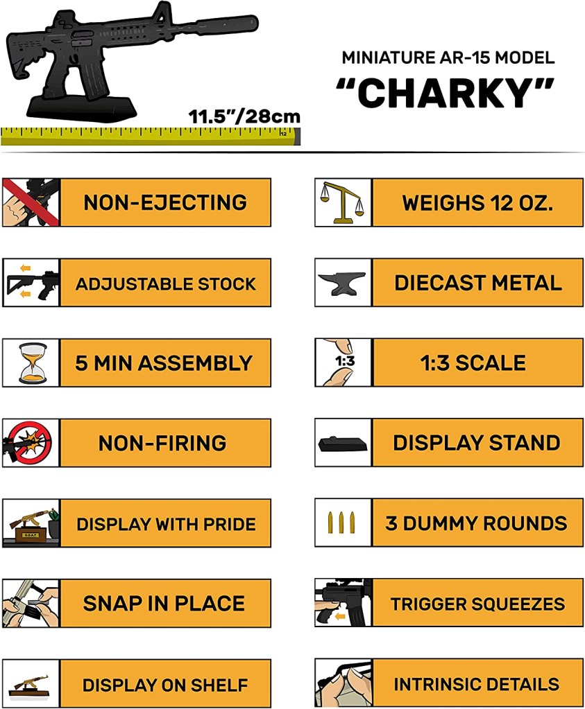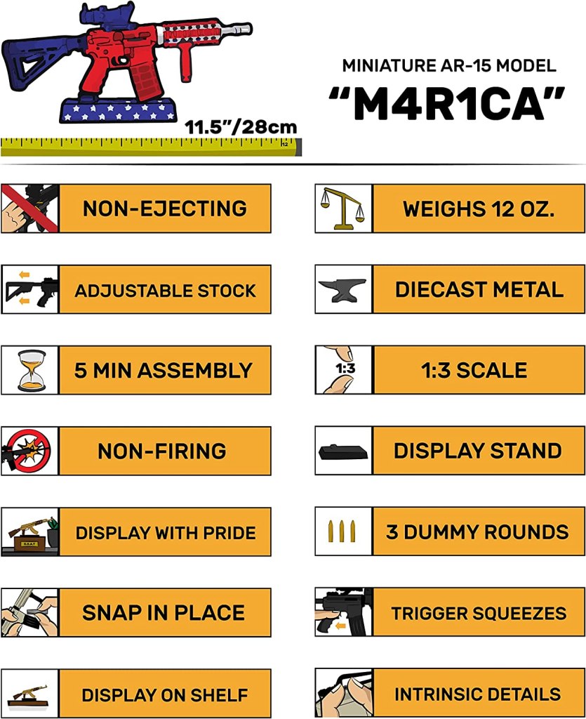 - 🛠️ FEATURES: Model includes a removable magazine with 3 dummy rounds, cycling ability of rounds, operating charging handle, functioning dust cover, thumb safety switch, trigger squeezes, removeable hand grips. Modify with spray paint or gaffer tape and customize your model with available attachments. This product is a non-firing miniature model with a closed barrel.