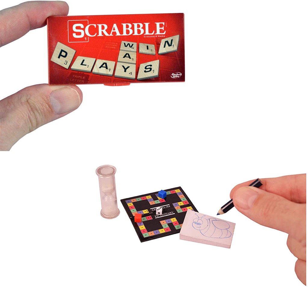Another fully-functioning, fully-miniature board game — Pictionary! Complete with game pieces, timer, playing cards, pencils and paper, you can play a tiny version of the classic favorite.