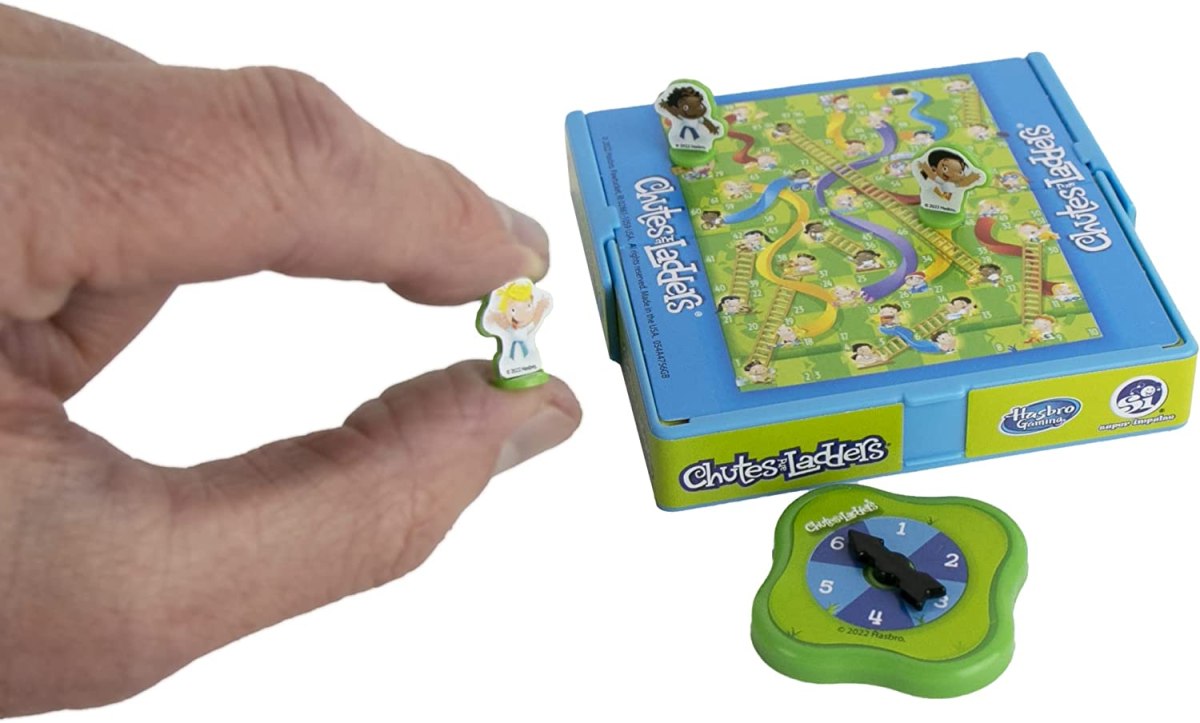 - The classic game of Chutes and Ladders is now available in a size that fits into the palm of your hand!